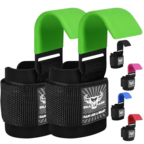 BEAST RAGE Tyngdlyftskrokar Handledsremmar - Tjocka Neopren Vadderade Gummibelagda Fitness Wraps Non Slip Pull Up Marklyftsgrepp Träning Gym Män Kvinnor (Green)