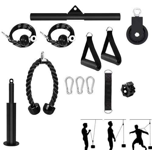 Kabel Remskiva Gym Tillbehör Hemmet, Total Home Gym Exercise, Pulley System Cable Cross Gym Fitness Triceps Biceps Equipment Accessories, LAT Kabeldragning Stålkabel Drag Träning (3-Handtag)