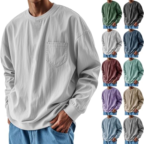 Långärmad tröja för män, rund hals sweatshirt män vardaglig pullover skjorta enfärgad sweatshirts lätt tunn tröja lös vardaglig pullover sweatshirts plus size vardagskläder, Khaki, 5XL
