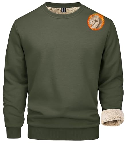 MAGCOMSEN Vintertröja för män fleece pullover fodrad sporttröja varm långärmad skjorta med rund hals, Armégrön, XL