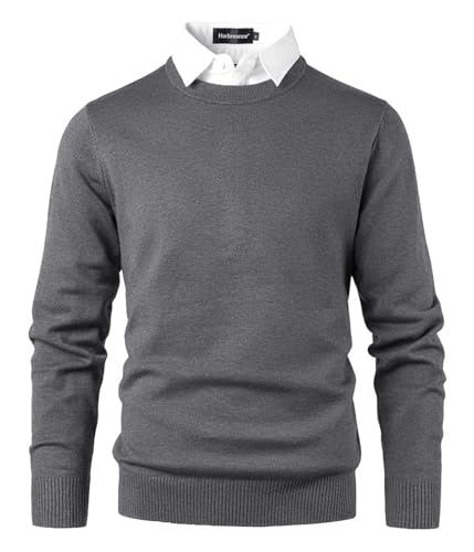 Harbrosrce Herrtröjor med rund hals stickad tröja med falsk skjorta hals vardaglig business stickat pullover enfärgad, Grå, M