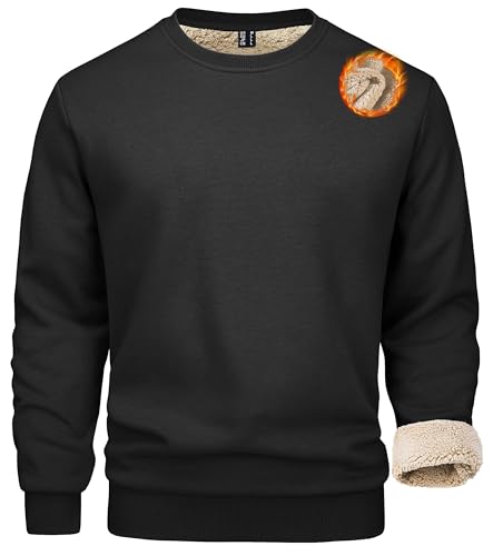 MAGCOMSEN Vintertröja för män fleece pullover fodrad sporttröja varm långärmad skjorta med rund hals, svart, L
