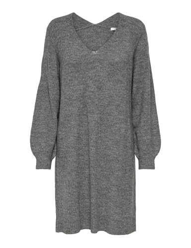 JDY Kvinnor långärmad stickklänning regelbunden passform Midi pullover klänning V-hals skjorta Knälång JDYELANORA, Color:Dark Grey, Size:M