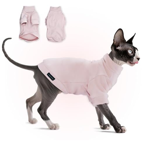 Sphynx Katttröja hårlös kattkläder tröja skjorta mjuk varm långärmad pullover husdjurskläder pyjamas hundduk för små hundar overall husdjurströjor (L-rosa, Large)