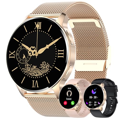 JUBUNRER Smartwatch för Kvinnor Män Telefon 1,34" HD-Pekskärm Fitness Klocka Rund Vattentät Stegräknare Pulsmätare Sömnspårare Menstruationscykel Gåvor Android IOS [3 Armband]