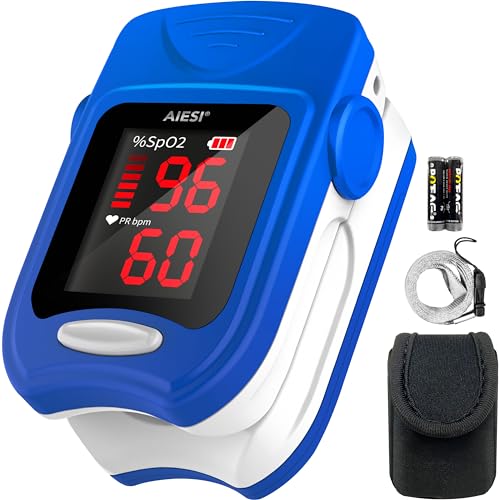 AIESI® Fingerpulsoximeter professionell certifierad Pulsoximeter med LED -display med hög ljusstyrka A1, Batterier, Förvaringsväska, Garanti 24 månader