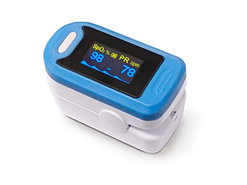 EUROPAPA pulsoximeter, fingerpulsoximeter, oximeter idealisk för att snabbt mäta syremättnad (SpO2) - enkel pulsmätare för vuxna - OLED-skärm (Blå)