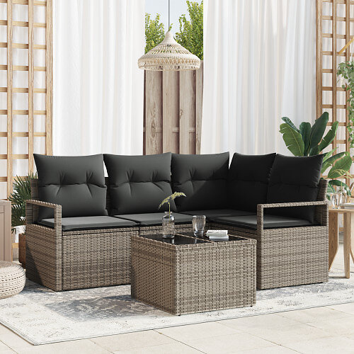 vidaXL Trädgårdssoffset 5 pcs Ljusgrå Poly Rattan, Pulverlackerat Stål