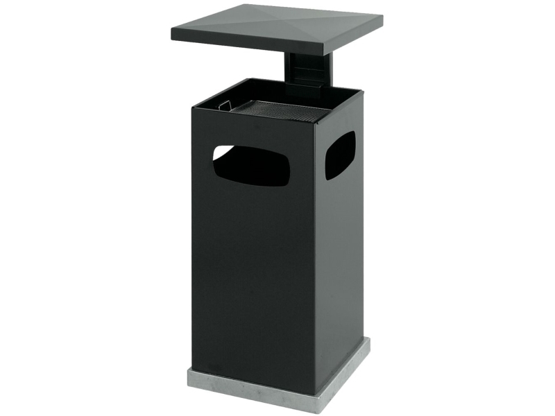 Papperskorg Med Askkopp, V-Part, Antracit, Galvaniserat Stål/Pulverlackerat Stål, 70 Liter Med Innerbehållare I Metall, Brandsäker, Utomhus, Förberedd För Markmontering Inkl. Material