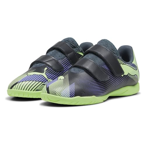 PUMA Unisex Kid's Future 7 Play It V Jr fotbollssko, Grå himmel Elektro Lila Fizzy Apple Puma Vit, 4.5 UK