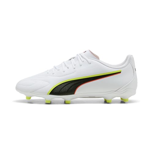 PUMA Unisex King 20 Play FG/AG fotbollssko, vitlysande röd gul varning, 8,5 UK, Puma vit lysande röd gul varning, 42.5 EU