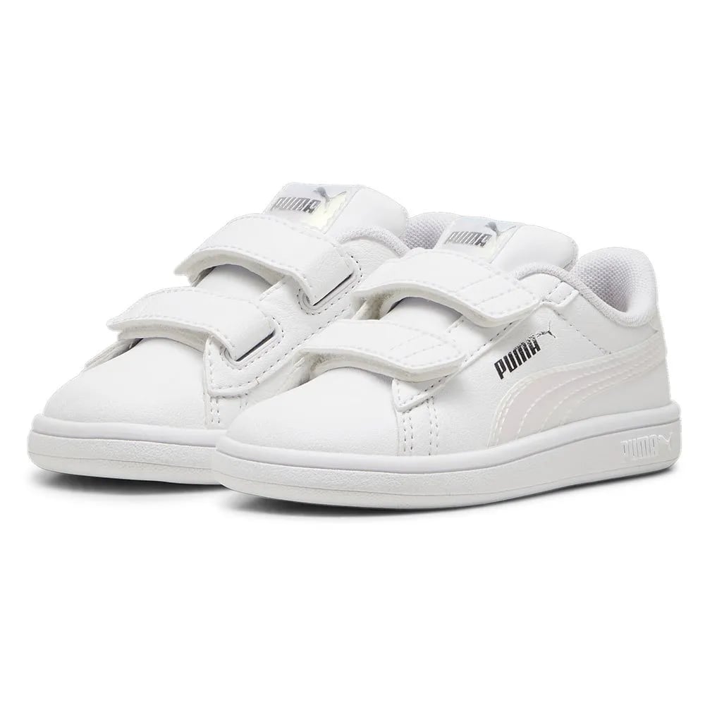 PUMA Unisex Baby Smash 3.0 Holo 2.0 V Inf Sneaker, Puma White Mauve Mist Puma Silver, 25 EU