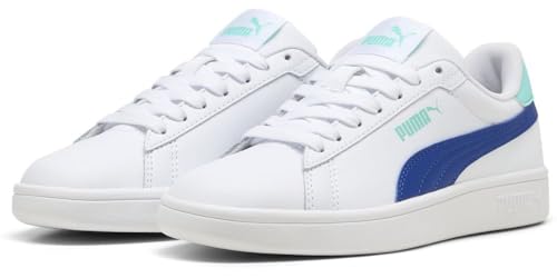 PUMA Smash 3.0 L Jr, Unisex-barn och tonåringar sneakers, Puma Vit Hyperlänk blå kallgrön, 36 EU
