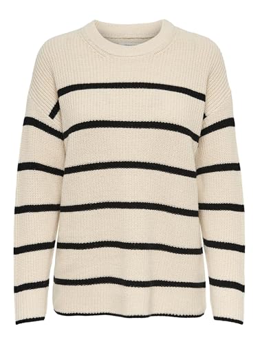 ONLY Kvinnors ONLPERNILLE LS randig O-hals KNT NOOS stickad tröja, Pumice Stone/Stripes: svart, L