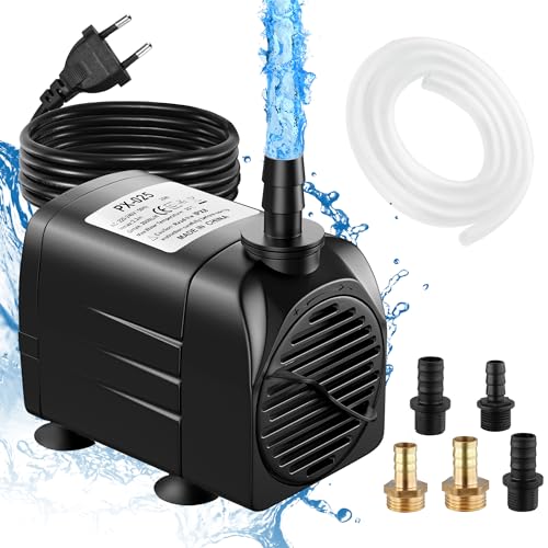 EXLECO Fontänpump Dammpump 2500L/H Vattenpump Pumpar Ström 45W Akvarium Pump Filterpump Vattenpump Fontän Dammar med 4 Munstycken, 5M Kabel, 3 Fontänstilar