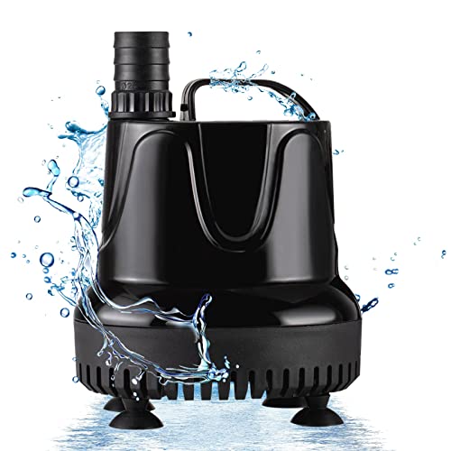 LIFERUN Akvariumpump, vattenpump, dränkbar pump 1 500 /H, för dammbrunn, akvarium, stenträdgård, ultra-tyst vattenpump med filter och 2 munstycken 13 mm/16 mm, max flödeshöjd 1,6 m (15 W)