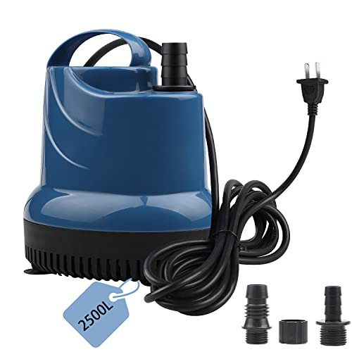 hygger Akvariumpump, minivattenpump, 2 500 l/h, 60 W, ultra tyst, akvarium, dränkbar pump, fontänpump med 3 munstycken, för damm, fontän, akvarium, trädgård, fontän