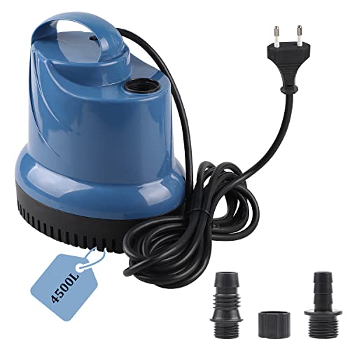 Exleco Minivattenpump, dränkbar pump, akvariepump, 4 500 L/H 130 W 230 V flödeshöjd 3,8 m, kabel med kontakt 2,5 m, utloppsdiameter 16/20/25 mm för trädgårdar akvarium, damm, fontän