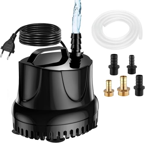 Vattenpump 25 W 1500 l/h, AolKee, liten vattenpump, dränkbar pump, 2 munstycken för damm, brunn, akvarium, trädgård