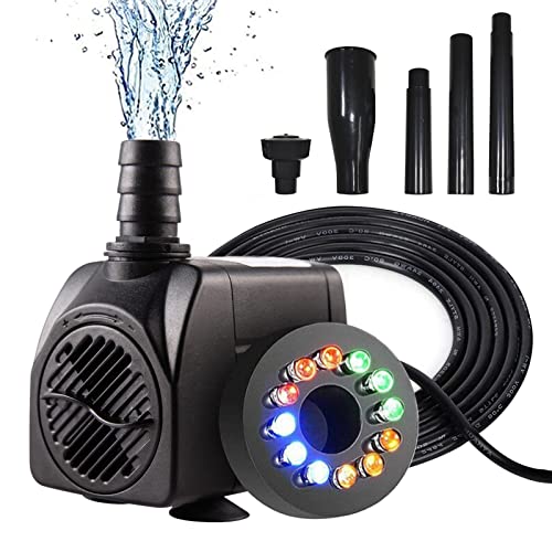 Utomhuspump, dränkbar fontän pump, fiskdamm pump, tyst dränkbar akvarium, vattenpump 220 V, kraftfull utomhusdekoration trädgård med LED och munstycken 750L/H 15W