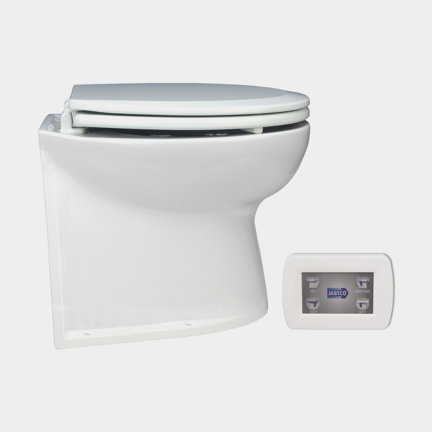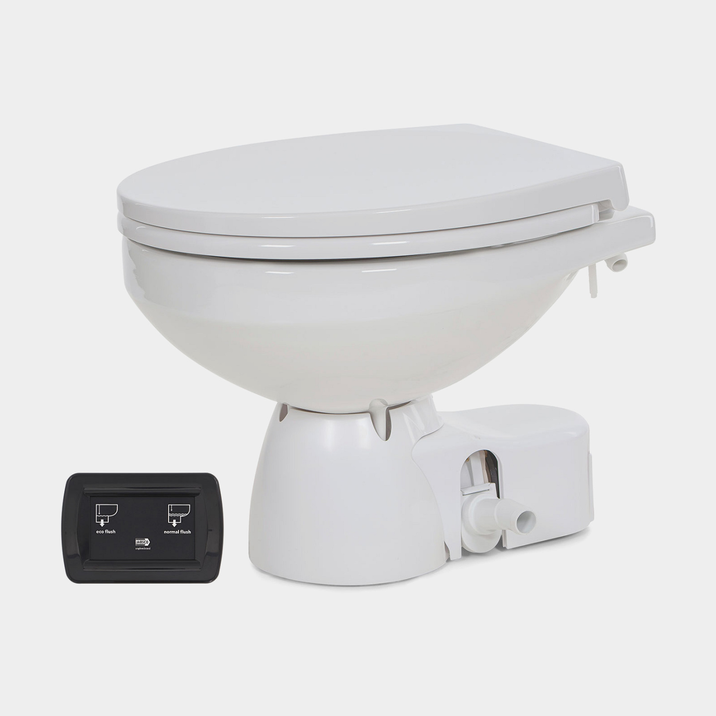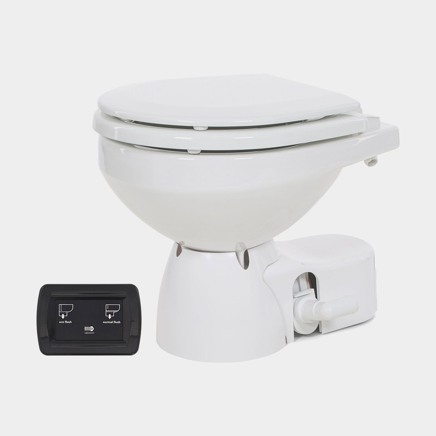 Eltoalett båt Jabsco Quiet Flush E2 Compact, 12 V, liten skål, för sjövattenfyllning + pump