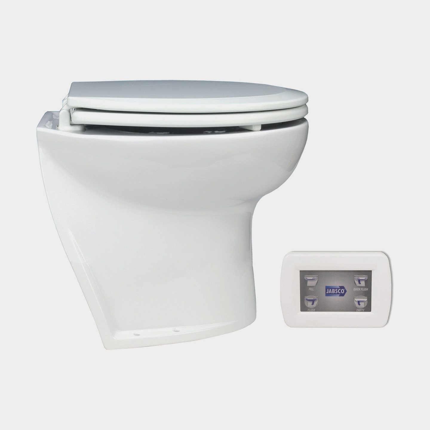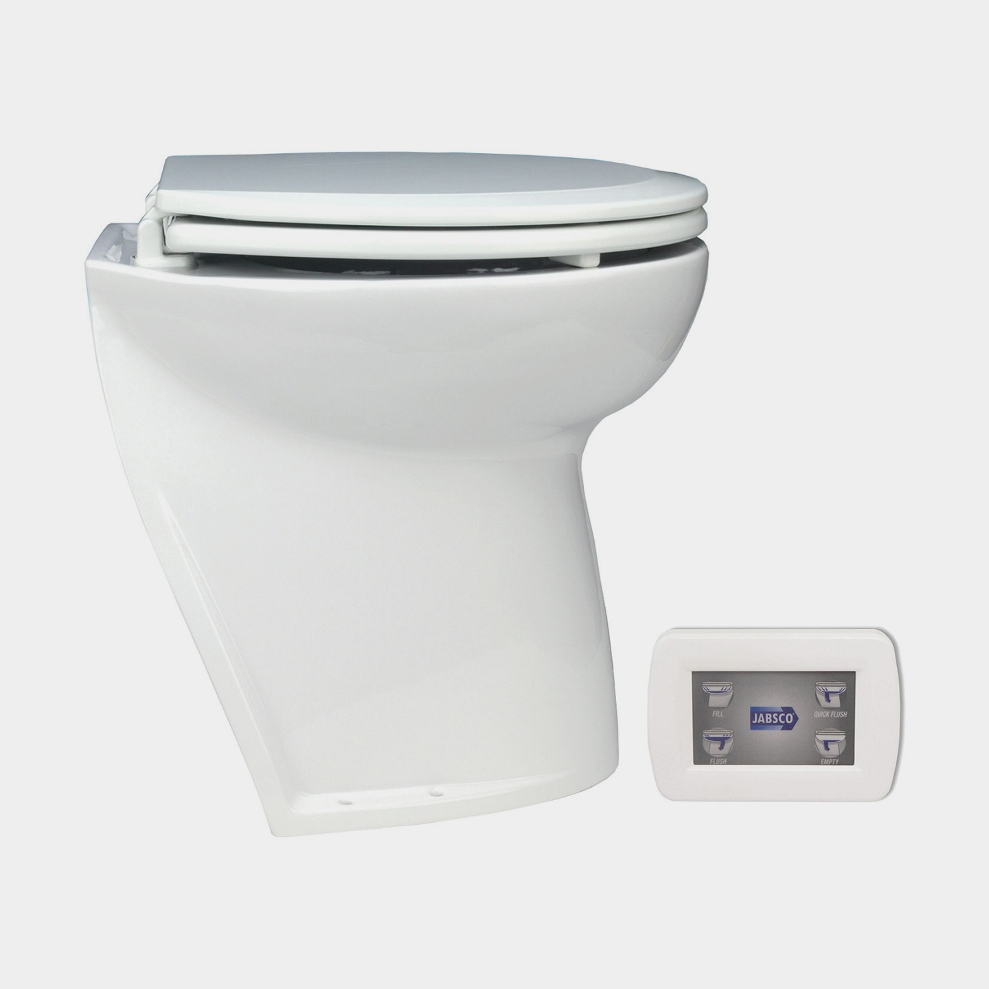 Eltoalett båt Jabsco Deluxe Flush 17", vinklad rygg, 12 V, stor skål, för sjövattenfyllning + pump