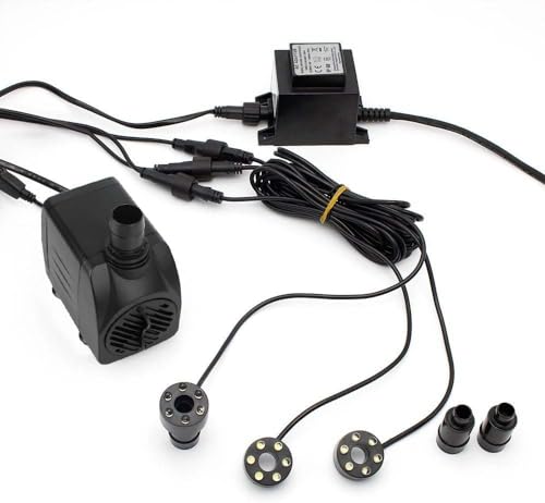 Utomhuspump, dränkbar fontän pump, fiskdamm pump, tyst dränkbar akvarium, vattenpump 220 V, kraftfull utomhusdekoration trädgård med LED och munstycken 750L/H 15W