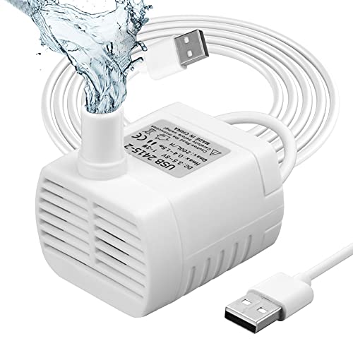 EXLECO USB akvariepump 500 l/H 4 W dränkbara pumpar, minivattenpump, liten fontäpump, filterpump, ultratyst fontän, pump med 1,8 m kabel, 2 mässingsmunstycke för akvarium