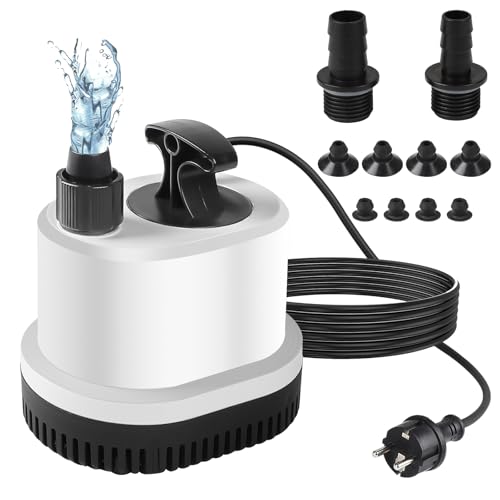 EXLECO Fontänpump Dammpump 2500L/H Vattenpump Pumpar Ström 45W Akvarium Pump Filterpump Vattenpump Fontän Dammar med 4 Munstycken, 5M Kabel, 3 Fontänstilar