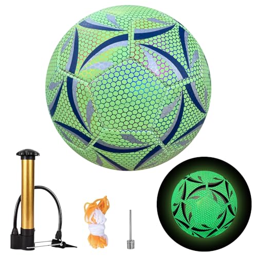 SKIKHN lysande fotbollsstorlek 5, reflekterande fotboll i mörkret, reflekterande fotboll med pump och bärväska, lysande fotboll för nattspel, ungdomar och vuxna
