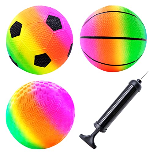SHENSAIGO 3 stycken regnbågsbollar, barn, PVC-fotboll, barn och vuxna, uppblåsbara bollar med pump, 22 cm, barnboll, regnbågsboll, vattenboll, fotboll för inomhus- och utomhusbruk, lekboll barn