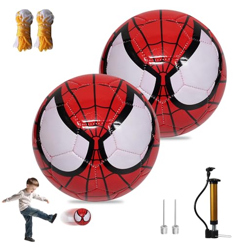 WDKXCN Fotboll barn storlek 3, 2 stycken fotbollar för barn med nät och pump, fotbollsstorlek 3 barn för träning, fotboll spindelögonmönster presenter för pojkar flickor