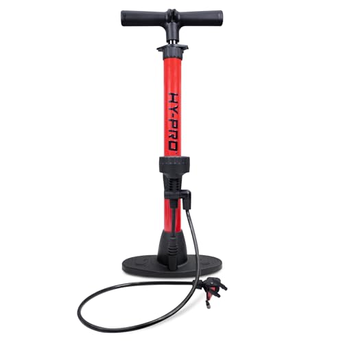 Hy-Pro Pump för cykel och bollar - med tryckmätare, presta & Schrader-ventiler, lämplig för alla bollsporter fotboll basket rugbyboll, cykelpump, golvpump, mountainbikepump