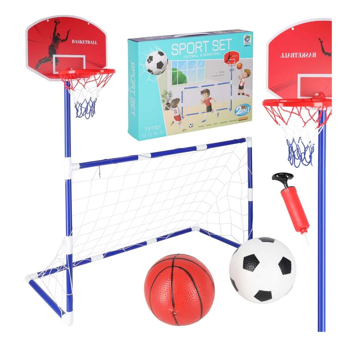 2-i-1 måluppsättning för fotboll och basket med 2 bollar och pump