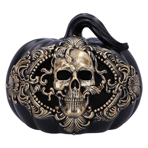 Nemesis Now barock skörd pumpa skalle 16,7 cm, harts, svart pumpa och guld skalle prydnad, halloween dekor, barock design, återanvändbar, gjuten i finaste harts, skickligt handmålad