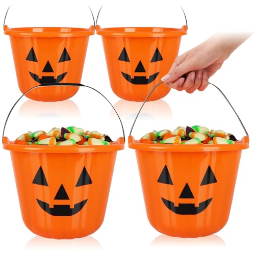 COM-FOUR® 4x Halloween pumpa hinkar - plasthinkar i pumpa design för att samla godis - insamlingspåse med handtag för Halloween
