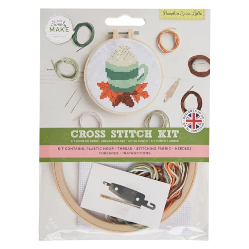 Gör helt enkelt korsstygnssats, pumpa krydda latte-design för barn och vuxna, inklusive ring, broderitråd, tyg och nål