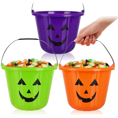COM-FOUR® 3x Halloween pumpa hink - plasthink i pumpa design för att samla godis - insamlingspåse med handtag för Halloween