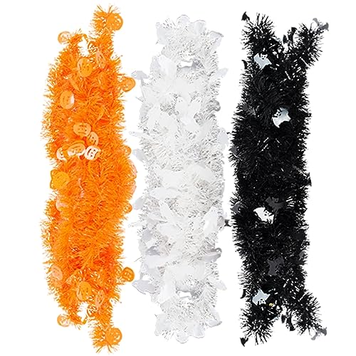 AKH® Halloween Glittergirlang | 6 Meter (20 Fot) | Läskig Orange Vit & Svart | Pumpa Spöke Fladdermus Design | Banderoll för Halloween Fest