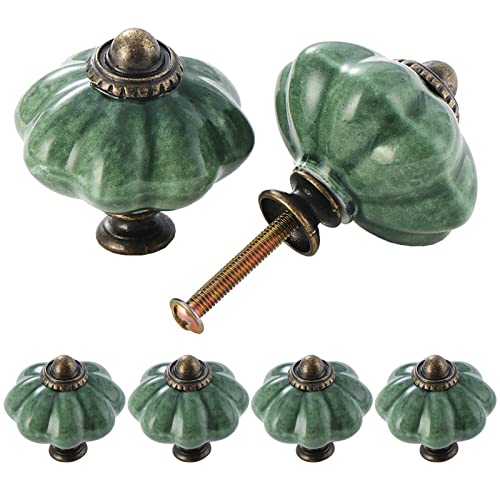 Roellgs 12-pack keramiska dörrknoppar, pumpa, keramiska knoppar, vintage skåpknoppar med monteringsskruvar, antik garderob, draghandtag, köksskåpsknoppar för byrå (grön)
