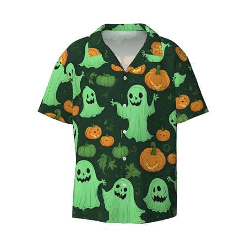 Herrar Halloween pumpa tryckt grön spöktryck kortärmad klänning skjortor, Svart –, XXL