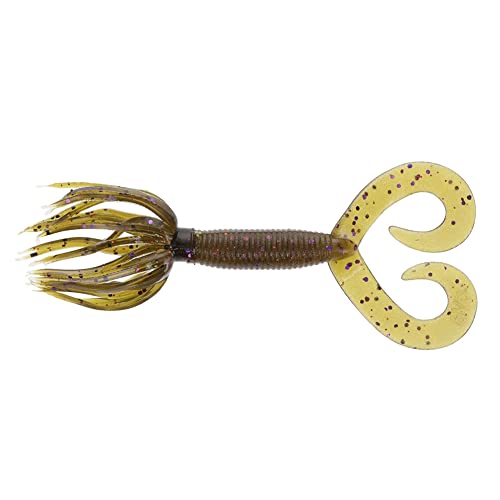 YAMAMOTO 10 cm dubbelstjärt rockgrub – realistisk, lättanvänd mjuk plastfiskbete med friflytande kjol – 10-pack, grön pumpa med lila och liten kopparflingor