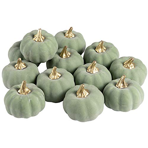 Whaline konstgjorda pumpor bulk vintage grön pumpa skörd verklighetstrogen pumpa falsk skum pumpa för höst halloween hem fest tillbehör Thanksgiving fest hus kök bröllopsdekoration (12 st)