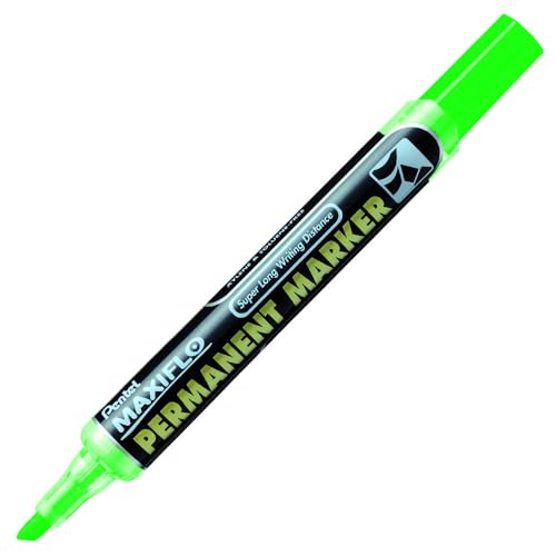 Pentel Maxiflo permanent markör med tryckknapp på baksidan för att pumpa bläcket. Kilspets. Färg: grön - 12-pack