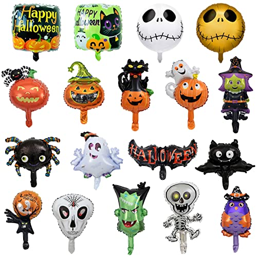 SAMSYOKI 18 stycken halloween dekorativa ballonger, fladdermus spindel pumpa häxa skelett spöke halloween helium ballong set folieballong halloween för bar hem barn skrämmande festdekorationer