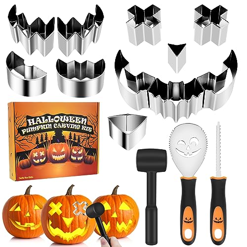 Dreamtop 14 stycken halloween pumpa snideri set pumpa snideri mallar rostfritt stål gör-det-själv halloween pumpa snideri verktyg inklusive gummihammare för vuxna och barn