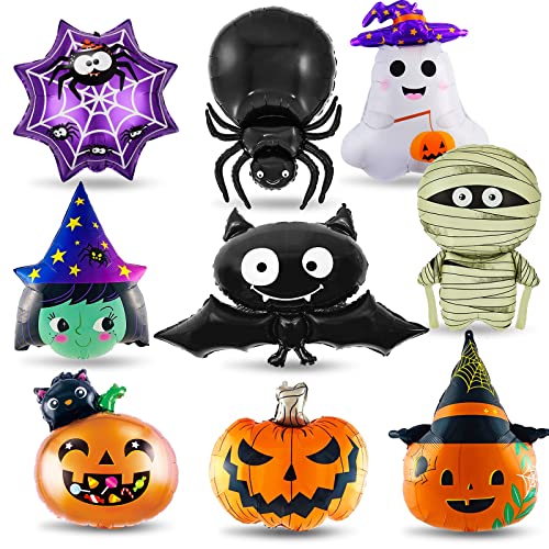 Folieballong halloween, 9 stycken XXL pumpa häxa spöke fladdermus spindelvävsballong, spindlar jätteballong, halloween party ballong för barn födelsedag dekorationer tillbehör gåva