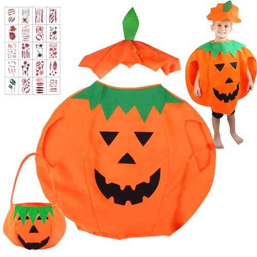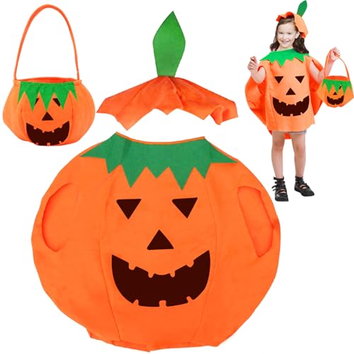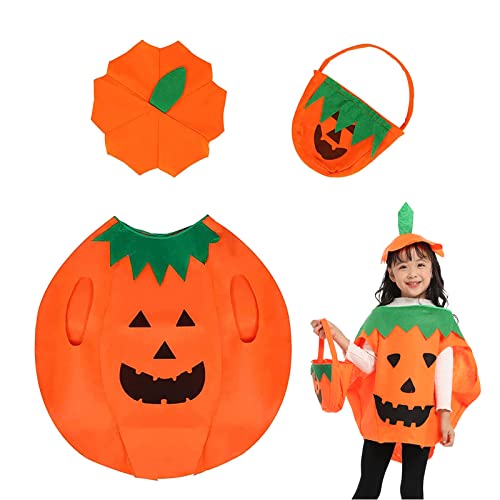 OUQIWEN Pumpa kostym för barn, halloween cosplay pumpa kostym, med pumpakorg och hatt, karnevalskostym för pojkar och flickor, halloweenfest cosplay