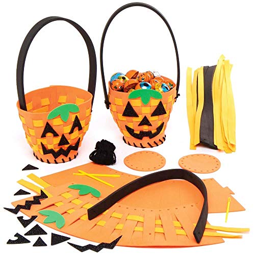 Baker Ross AX253 Pumpa vävkorg kit - paket med 4, gör dina egna Halloween-dekorationer, kreativa konst- och hantverkstillbehör för barn att designa och dekorera