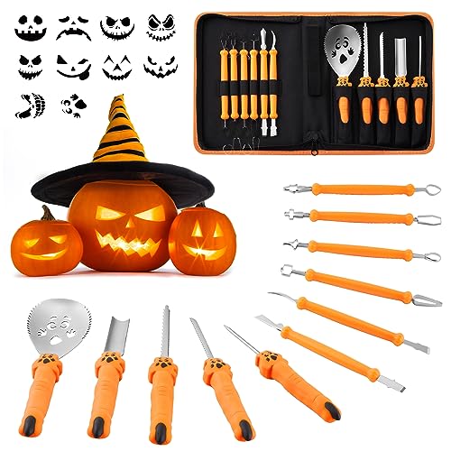 Pumpa snideri set Halloween professionell högpresterande pumpa snidkniv och verktyg med bärväska för vuxna och barn med professionell (förbättrad 18 delar)